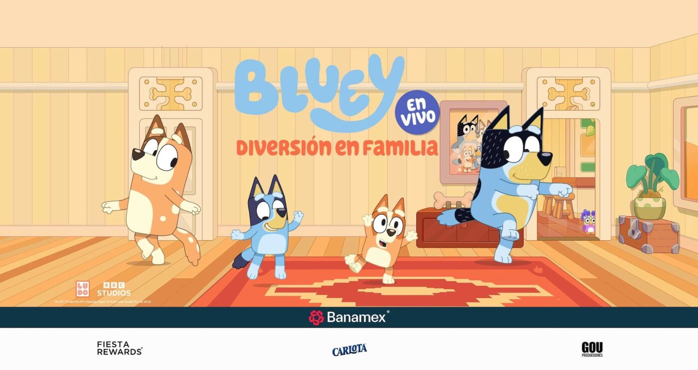 Bluey en vivo es una experiencia mágica donde los pequeños podrán junto a Bluey, Bingo, Muffin, Socks, Chilli y Bandit y emprender una busqueda de tesoro en la casa de los Heeler. Todo empieza cuando Bluey y Bingo estaban por salir a jugar al parque con sus primas Mufifn Por lo que usando su imaginación crearán juegos para encontrar una lista de tesoros y así conseguir el más grande tesoro jamás visto. Acompañadas de grandes amigos y clásicos favoritos de la seria de televisión como Chattermax, Floppy, Unicorse, Las Abuelitas y muchos más. Bluey y Bingo descubrirán el verdadero tesoro siempre será el poder jugar en familia. Bluey en Vivo es un show que grandes y chicos disfrutarán por igual de la mano de canciones y juegos como Keepy Uppy y Dance Mode, así que ven preparado para reír, bailar y pasar un gran rato en familia. ¡No te lo puedes perder!